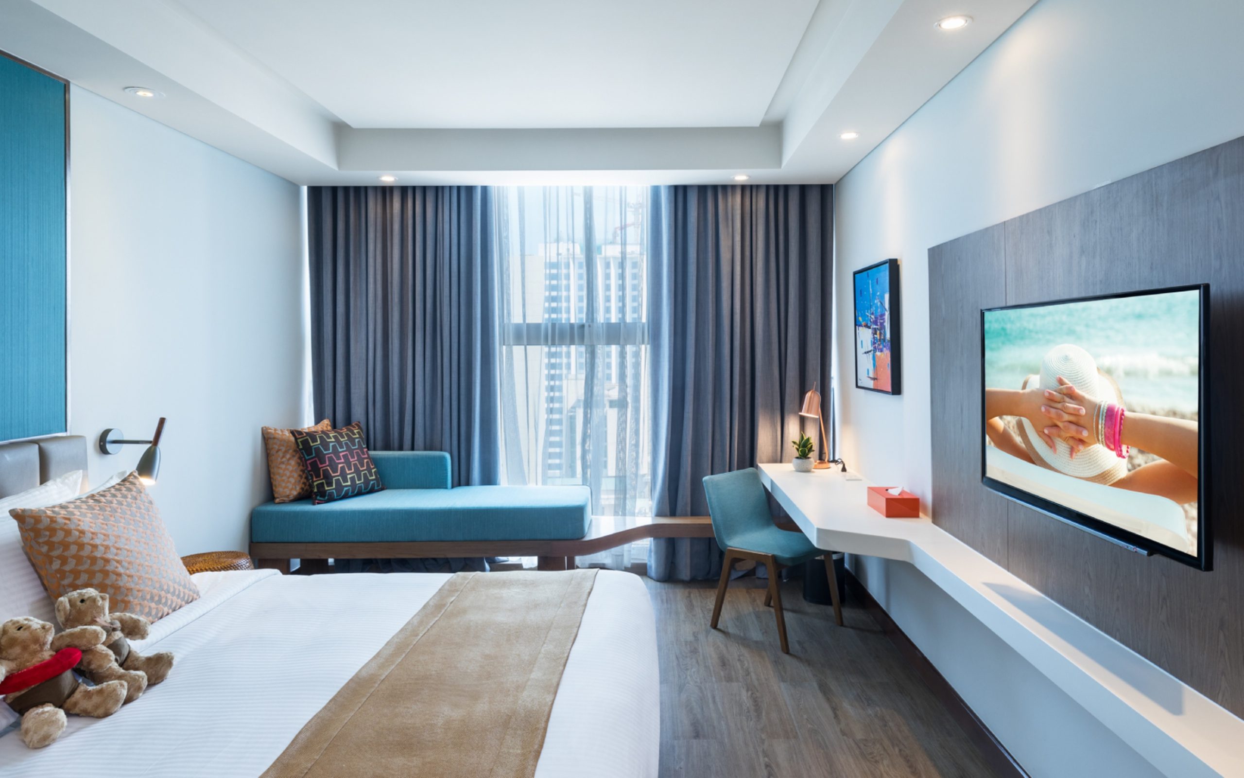 Tọa lạc trên đường Trần Phú, khách sạn Citadines Bayfront Nha Trang sở hữu một vị trí đặc biệt ngay trung tâm “con đường vàng”, mang đến tầm nhìn bao quát toàn bộ vịnh Nha Trang dọc theo bờ biển hình bán nguyệt. Khách sạn cũng chỉ cách ga Nha Trang khoảng 15 phút đi xe máy nên lưu trú tại đây du khách có thể dễ dàng tham quan và khám phá phố biển Nha Trang. Ngay khi bước vào phòng, bạn sẽ có cảm giác thoải mái như ở nhà. Bất kể phòng nào trong tổng số 280 phòng tại đây đều được thiết kế với phong cách hiện đại. Gần như tất cả các phòng đều có ban công với tầm nhìn hướng biển trong một không gian rộng thoáng.