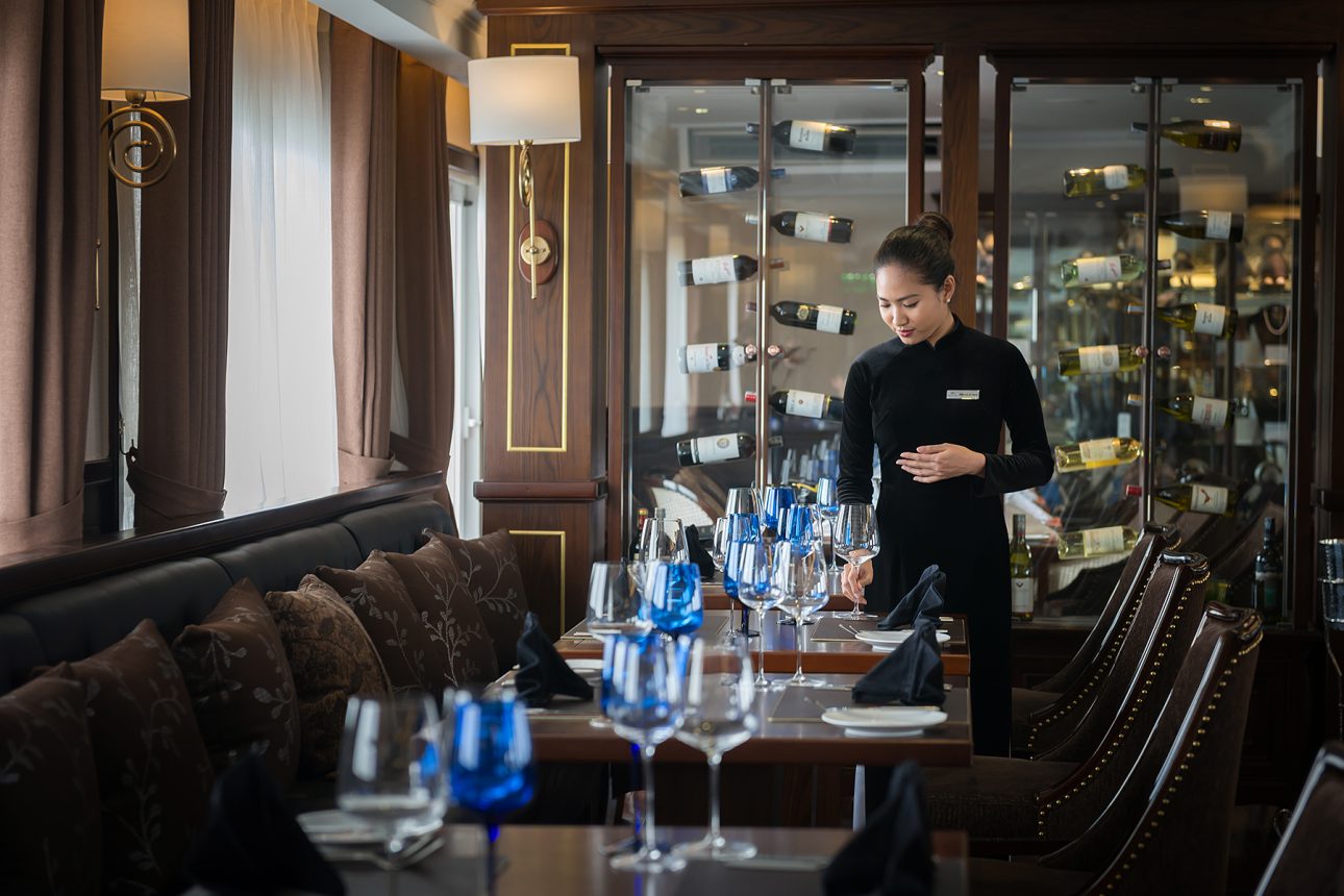 Du khách có thể thưởng thức bữa tối thịnh soạn tại nhà hàng Le Marin hoặc bất cứ địa điểm nào trên du thuyền. Sau bữa tiệc ẩm thực, thư giãn cùng nhạc sống tại Le Piano Lounge, câu mực đêm, hoặc xem phim trong cabin là sự lựa chọn hoàn hảo khép lại đêm nghỉ dưỡng đầu tiên của du khách