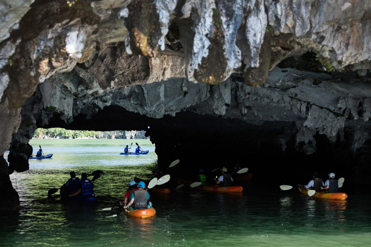 15:00 Quý khách thăm quan khu vực vụng Tùng Sâu, khu vực được bao bọc bởi những đảo đá nhấp nhô trên vịnh Hạ Long. Đến nơi này, quý khách có thể tự mình chèo kayaking len lỏi qua những hang đá, chiêm ngưỡng vẻ đẹp hoang sơ, bình yên của thiên nhiên, có cơ hội tham quan một trong những khu nuôi cấy ngọc trai lớn trên vịnh Hạ Long, tìm hiểu quy trình tạo nên một viên ngọc trai, từ khâu nuôi cấy đến thu hoạch và chế tác.