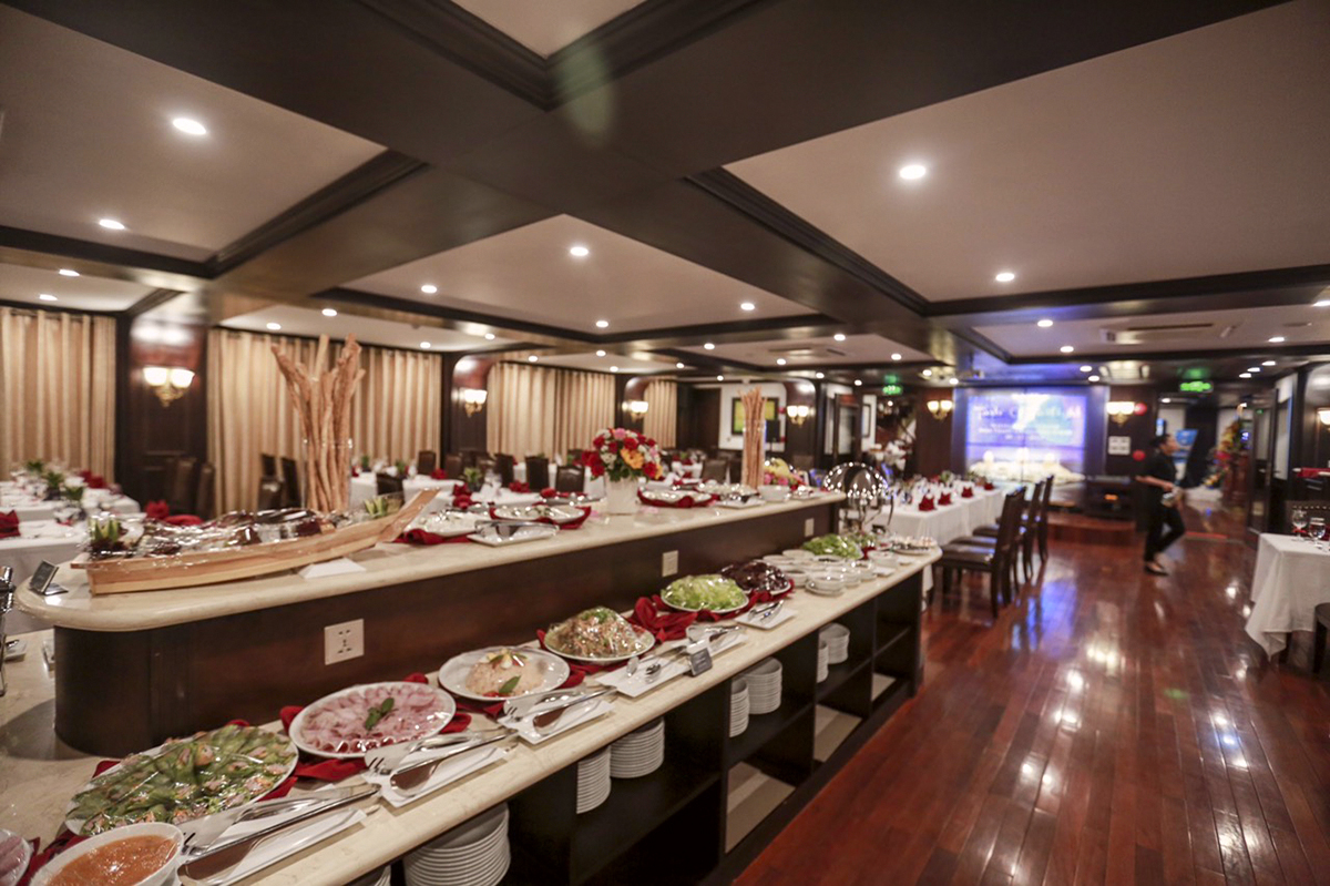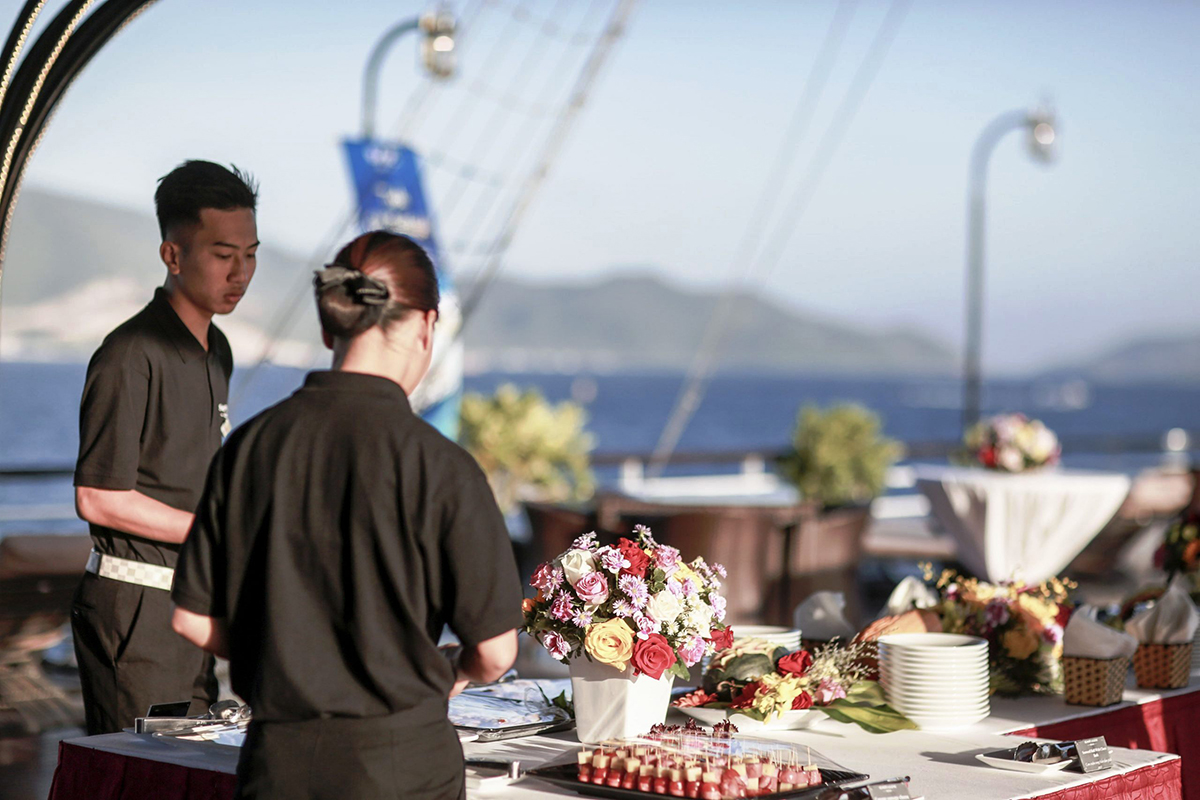 12:15 – 14:00 Sau quãng thời gian chơi đùa tại bãi biển, quý khách trở lại tàu để thưởng thức bữa trưa buffet thịnh soạn với nhiều món ăn và hải sản đặc trưng của Nha Trang. Sau bữa trưa, du khách có thể tham gia hoạt động câu cá tại boong tàu hoặc nghỉ ngơi, tắm nắng tại khu vực boong tàu thượng.