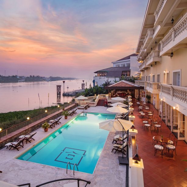 Được xây dựng từ năm 1999 theo phong cách kiến trúc cổ điển của Pháp, khách sạn Victoria Châu Đốc là sự giao hòa hoàn hảo với khung cảnh tự nhiên xung quanh với tổng số 92 phòng, được lát sàn gỗ và có hướng nhìn ra sông hoặc thành phố. Tọa lạc tại trung tâm thị trấn Châu Đốc, bên bờ sông Bassac, nơi đã từng diễn ra những thước phim lịch sử của bộ phim Apocalypse Now của đạo diễn lừng danh Francis Ford Coppola, khách sạn 4 sao Victoria Châu Đốc như một ốc đảo nhỏ nổi lên giữa ngã ba sông rộng lớn. Đến với Victoria Châu Đốc, du khách sẽ có cơ hội hòa mình vào nhịp sống sông nước với những khu làng nổi trên sông, những người dân cần mẫn, khu chợ nổi nhộn nhịp với các hoạt động giao thương hay làng Chăm yên bình và hiền hòa.