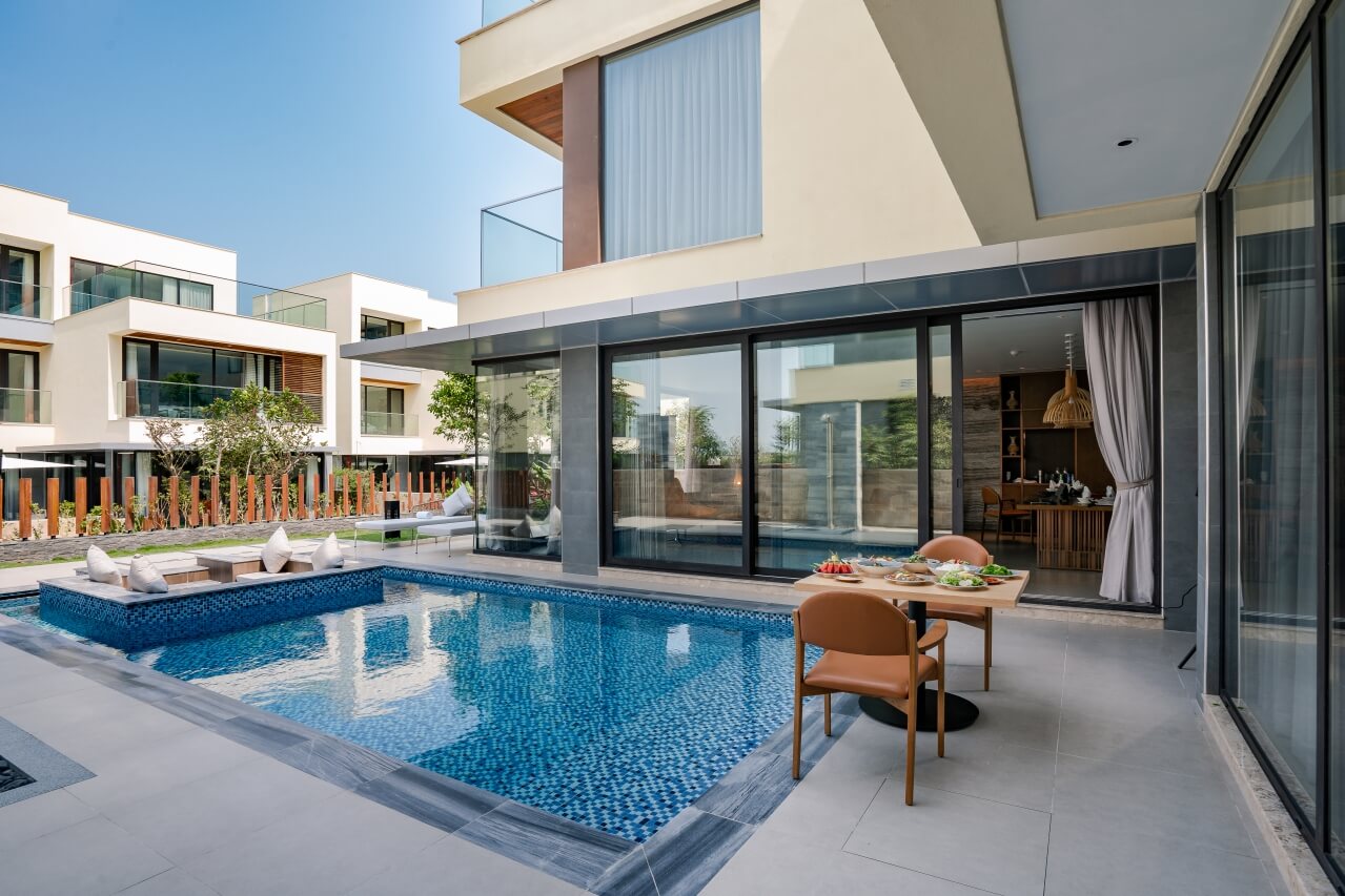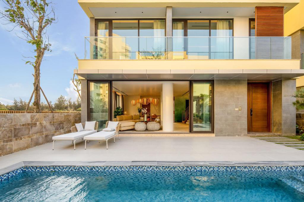 The Five Villas & Resort Quangnam Danang là khu nghỉ dưỡng đạt chuẩn 5 sao nằm trong chuỗi The Five Hospitality. Khu nghỉ dưỡng nằm ngay trên bãi biển Non Nước, giữa thành phố Đà Nẵng và tỉnh Quảng Nam. Khu nghỉ dưỡng gồm 34 căn biệt thự từ 3-6 phòng ngủ với nội thất cao cấp, được thiết kế theo phong cách Hàn Quốc hoà mình vào không khí mát lành của đại dương. Ngoài ra, The Five Villas & Resort Đà Nẵng còn mang đến cho du khách những trải nghiệm ẩm thực đặc sắc từ món truyền thống Việt đến những món quốc tế. Đặc biệt tận hưởng một ly cocktail tại Beach Bar và ngắm hoàng hôn trên biển là một trải nghiệm tuyệt hảo mà bạn không nên bỏ lỡ.