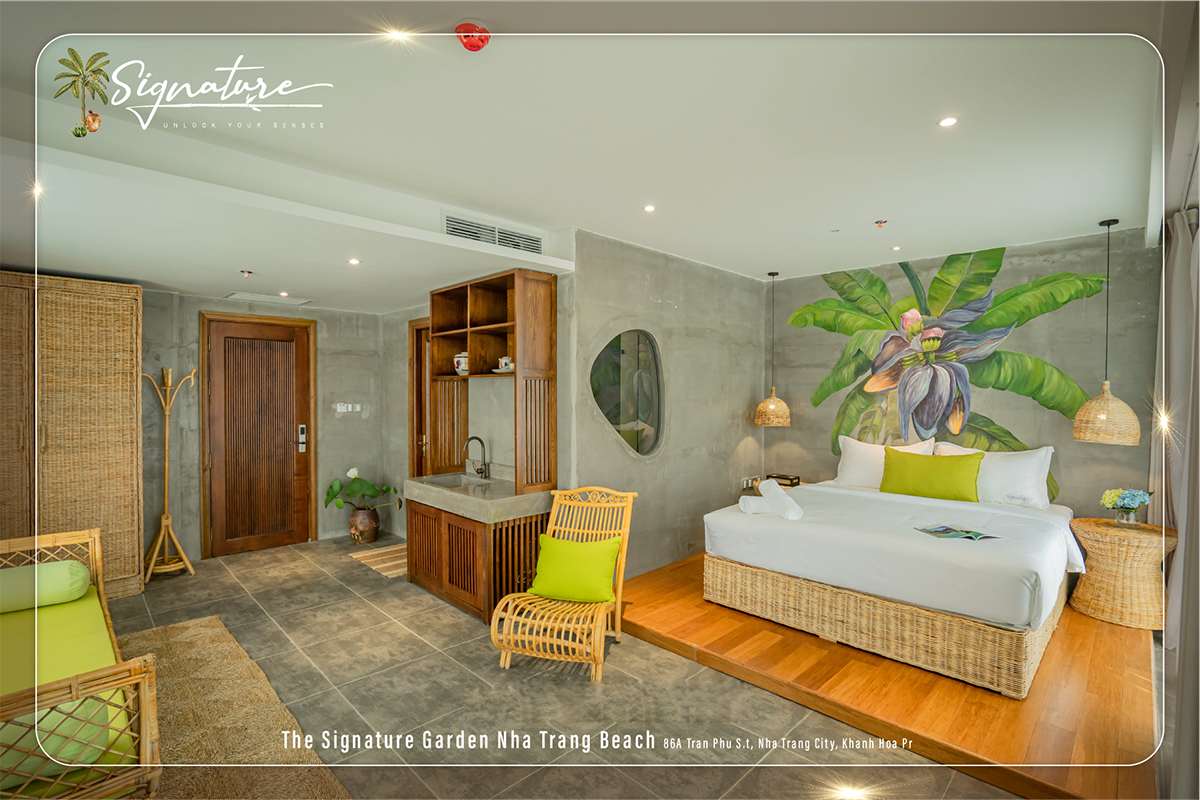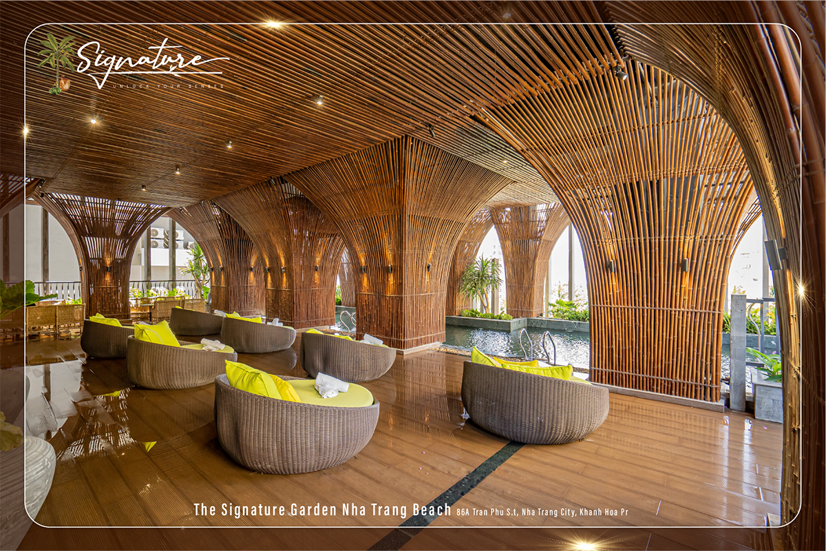 Tọa lạc trên cung đường hot bậc nhất Nha Trang, The Signature Hotel 5 sao tự hào mang đến trải nghiệm nghỉ dưỡng sang trọng bậc nhất với ban công hướng biển tuyệt đẹp. Sự kết hợp hài hoà giữa ngói - mây - tre cùng không gian xanh mát tại The Signature Hotel Nha Trang mang lại cho du khách trải nghiệm lên một tầm cao mới. Nội thất từ mây tre ngoài những lợi ích như độ bền, thiết kế đa dạng và là chất liệu thân thiện với môi trường, còn thể hiện truyền thống giàu đẹp ở Việt Nam ta. The Signature Hotel chắc chắn sẽ là điểm đến trọn vẹn cho kỳ nghỉ của bạn. Không chỉ mang đến không gian ấn tượng, nơi đây còn hứa hẹn sẽ đem lại rất nhiều dịch vụ chất lượng.